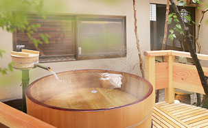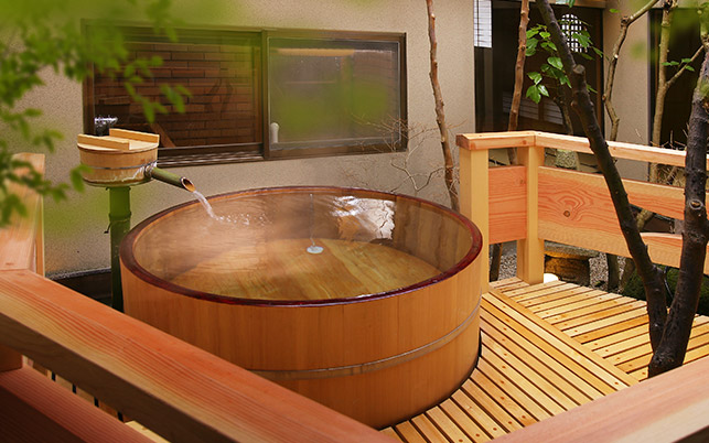 全ての客室には檜風呂があり、源泉かけ流しでお使いいただけます。